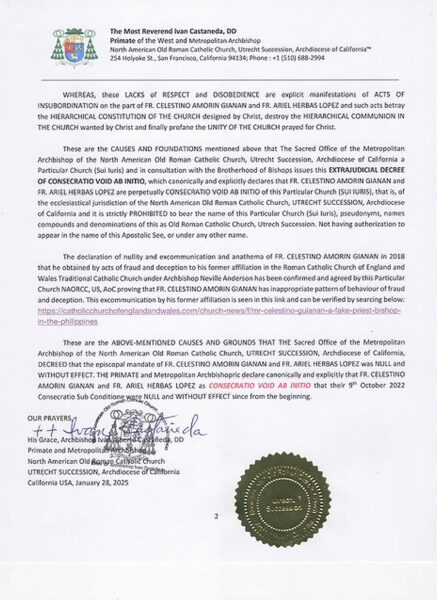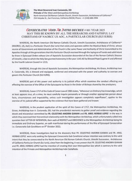 CONSECRATIO VOID AB INITIO DECREE Decree CONSECRATIO VOID AB INITIO DECREE #001 YEAR 2025 Constitutio Decretum - NAORCC US AoC Archdiocesan Seminary Rector